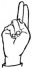 На ћирилици написано ВУКОСЛАВ ГАРАБИНОВИЋ састоји се из 19 слова [?]. Исписано ћириличном једноручном азбуком за глувонеме: